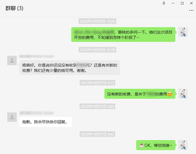 1、远在美的这位林博士,似乎完全不知道当前的付款情况,起码说明国内的这位项目主对接人没有做好充分及时的沟通,哪怕事情中途发生变化后,依然没有进行有效的沟通,以至于我会多次询问进度;